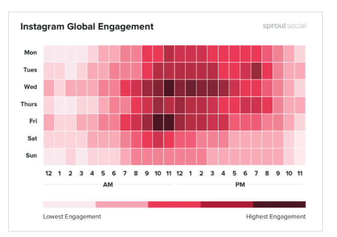 If we take Instagram engagement as a good proxy for overall mobile marketing efforts, we can also see that the most consistent engagement can be found Monday through Friday, 9 am–4 pm.