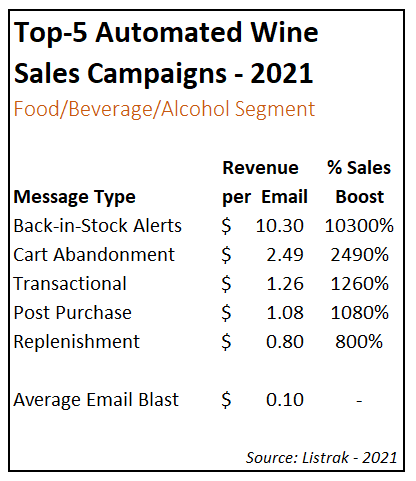 National wine brands using automated email marketing report 10-to-100 times more sales per customer compared to email blasts